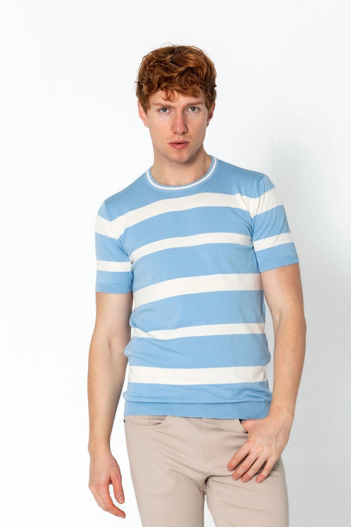Code 22 Code 22 Mesh striped crop t-shirt 9622 blue