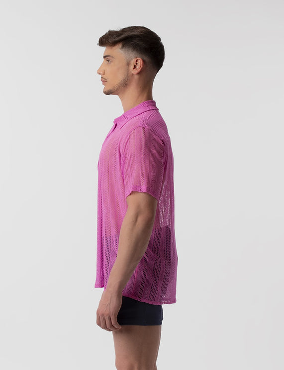 Barcode Berlin Barcode Berlin Dusan lace short-sleeve shirt pink