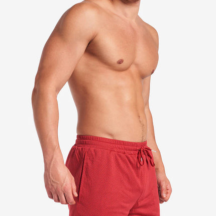 Get active or get social, the TEAMM8 S.S.C. Mesh 3” short has you covered. The perfectly versatile gym short with its upper-thigh length, 2 side pockets, quick dry stretch fabrication and double lined mesh. Function is styled up with the self-colored tie-cord with a metal tip and rubber SSC logo on the front right leg. Also available in a 6" length.