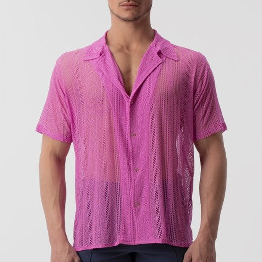 Show your skin and look extra hot in this flattering short-sleeve shirt from Barcode Berlin. The tapered yet relaxed fit and see-through lace fabric make this top perfect to wear to a party, a festival, or on any hot summer day. Made with a super soft fine poly blend, this top is guaranteed to keep you comfortable throughout the day and night.