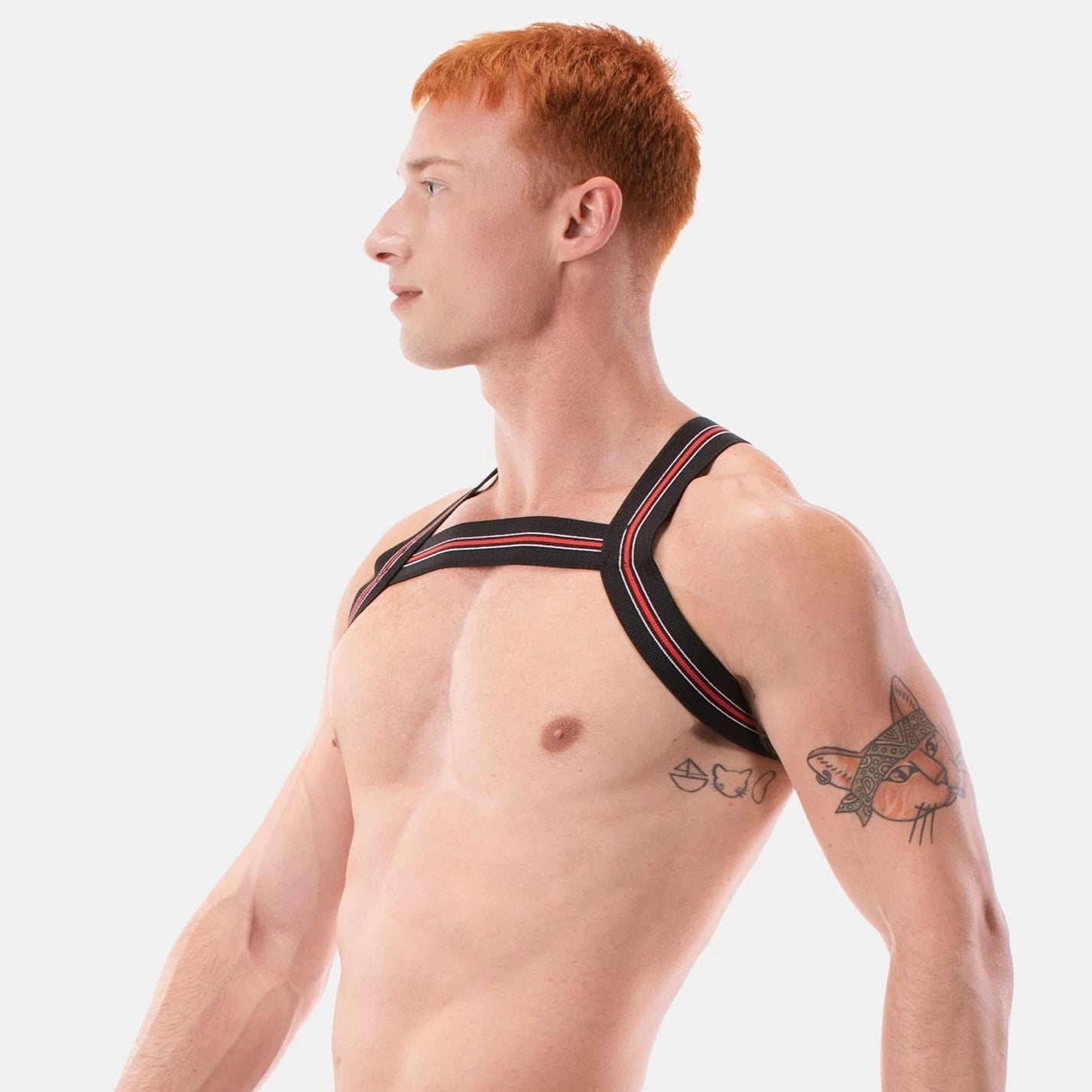 Get party ready with this harness Hapero from Barcode Berlin. This stand-alone elastic harness squares off the chest to create a defined masculine look.