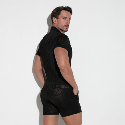 Get ready to rock a sleek and stylish look with this slim-fitting short jumpsuit from Code 22. Made from ultra-soft mesh fabric, this jumpsuit feels as good as it looks. The subtle floral pattern adds a little flair and keeps it from being too sheer. It features a 2-way zipper closure for easy wear and two side pockets. Drawstring for the perfect fit. If it sparks joy, we say get it fast because very few pieces were made!
