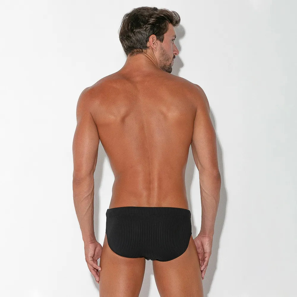 Look stunning at your next pool party in these swim briefs from Code 22. They feature a low-rise fit for the perfect tan line. The ribbed texture will beautifully complement your summer-kissed skin. They are also equipped with an enhancing removable cup, for the perfect-looking pouch, and a drawstring for additional adjustment. Lined.