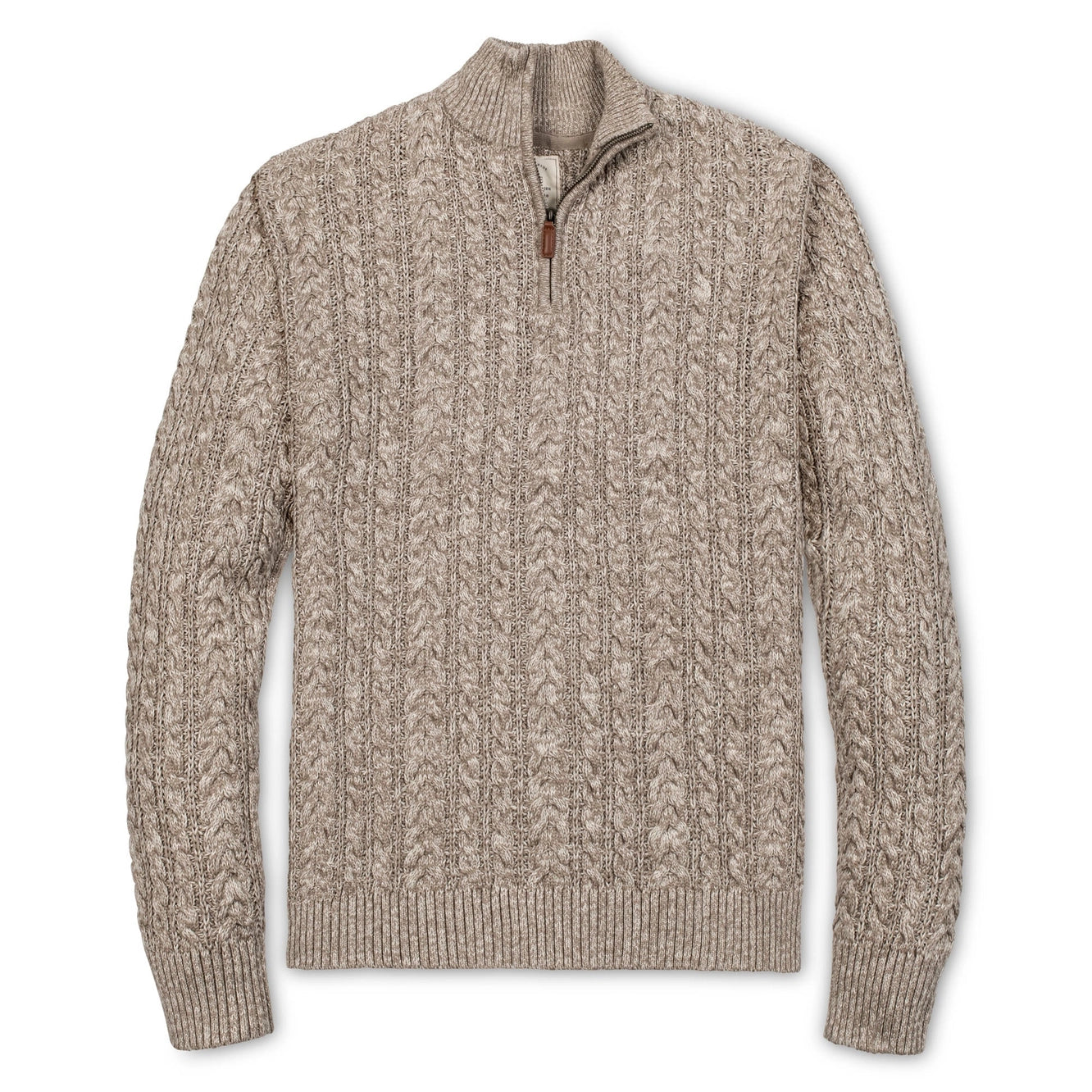 Stay cozy and stylish when the temperature drops with this half-zip sweater. Crafted from organic cotton, it features a soft cable knit texture and an easy, relaxed fit - perfect for layering. The rib-knit mock neck and half-zip front with a faux leather pull add a touch of classic detail.