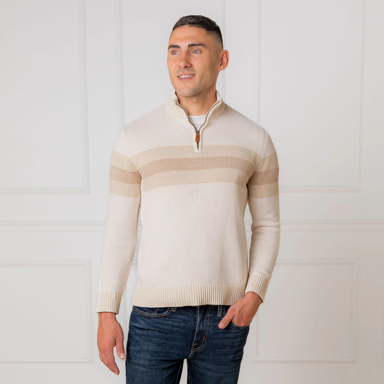 Stay cozy and stylish when the temperature drops with this half-zip sweater. Crafted from soft organic cotton in a subtle chevron knit, it offers an easy, relaxed fit that’s perfect for layering. Features a rib-knit mock neck, front half-zip for easy on and off, and a faux leather zipper pull.