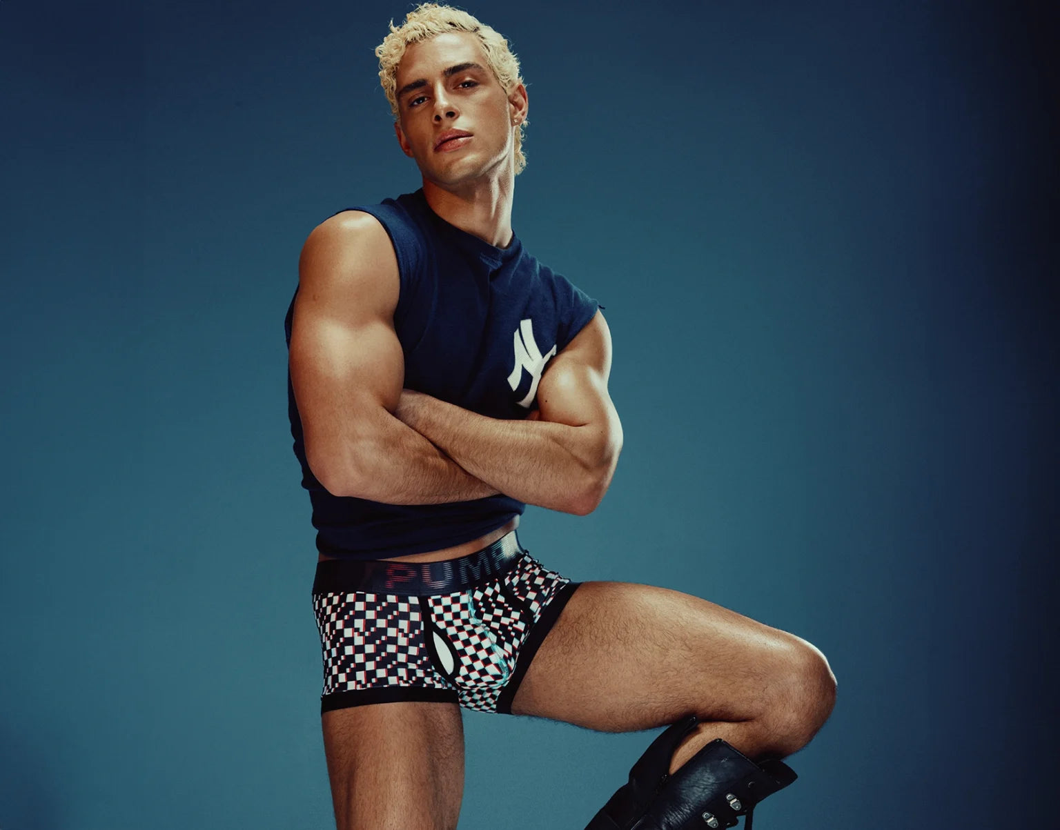 - 45 mm black waistband with PUMP! logo in color gradient stripes