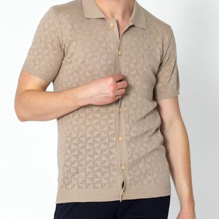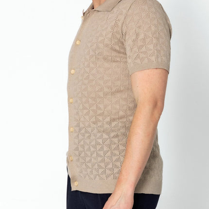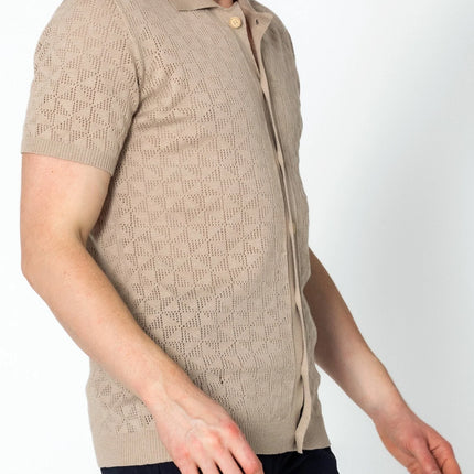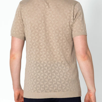 Crafted from high-quality crochet knit fabric, this polo shirt features a unique geometric pattern that adds a touch of modern flair. The crochet knit construction provides breathability and texture, making it ideal for warmer weather. The polo collar adds a classic touch, while the short sleeves offer comfort and versatility. With its tailored fit and attention to detail, this polo shirt is perfect for both casual and semi-formal occasions. Pair it with chinos or shorts for a relaxed daytime look, or dress it up with trousers for a more refined ensemble.