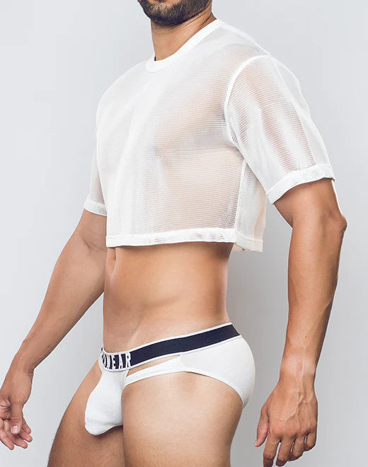 Break the mold and fast forward into the future with the 3D mesh cropped tee. A fusion of innovation and style crafted from a 3D mesh fabric that offers a tactile experience exuding confidence. Pair it with a tank top or wear it as is for an uber-sleek look.