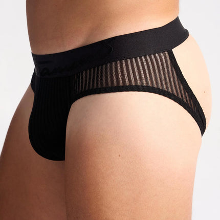 Hey Loverboy, what are you wearing? If it’s not the Casanova Jock then you need to up your seduction game! Elegantly sheer with a self stripe in the fabric for an elevated super sexy offering. The sheer fabric extends from the pouch and over the side to form the straps to give you a jockstrap with max lift, support, and comfort! Features a solid fabric lined pouch and off-center metallic logo on front of the self-colored waistband.