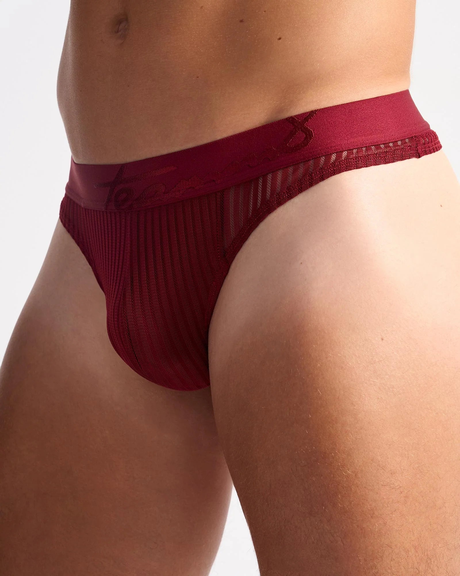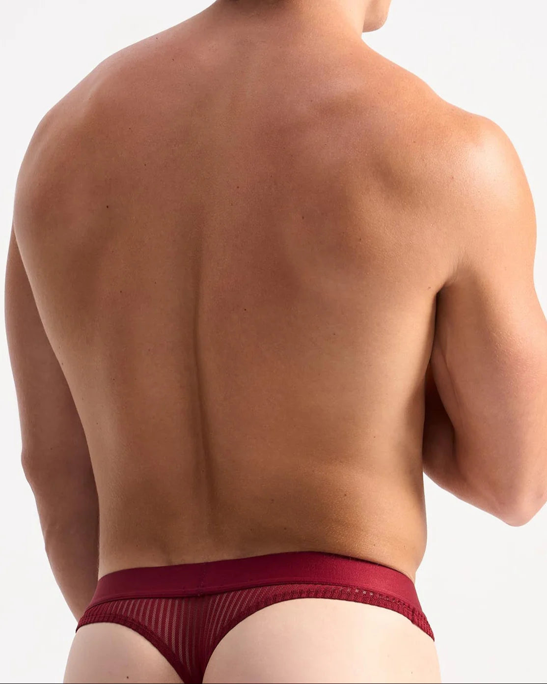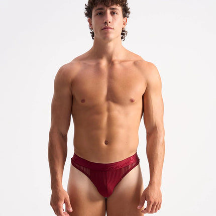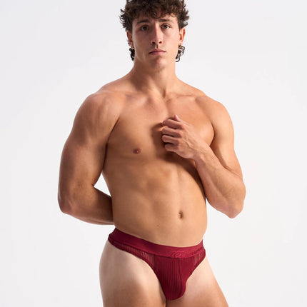 Hey Loverboy, what are you wearing? If it’s not the Casanova Thong, then you need to up your seduction game! Elegantly sheer with a self stripe in the fabric for an elevated super sexy offering. The sheer fabric extends from the pouch to the hip and over the cheeky back to form the seamless Thong. Features a solid fabric lined pouch and off-center metallic logo on front of the self-colored waistband.