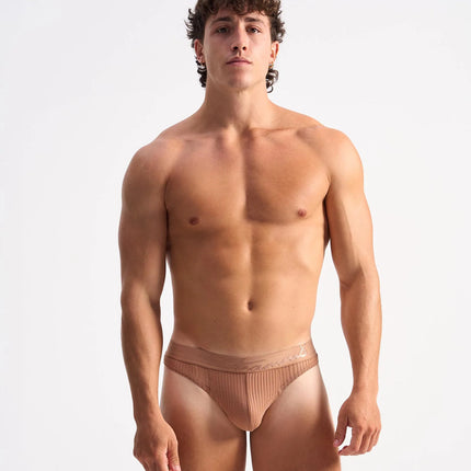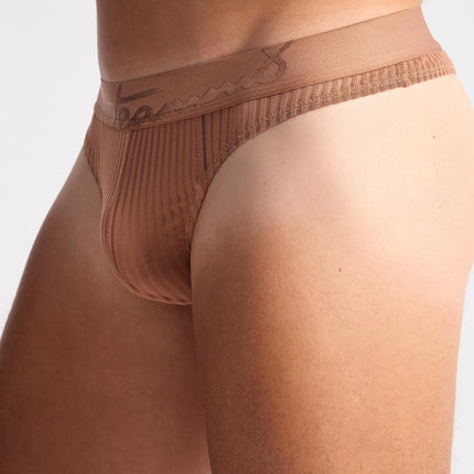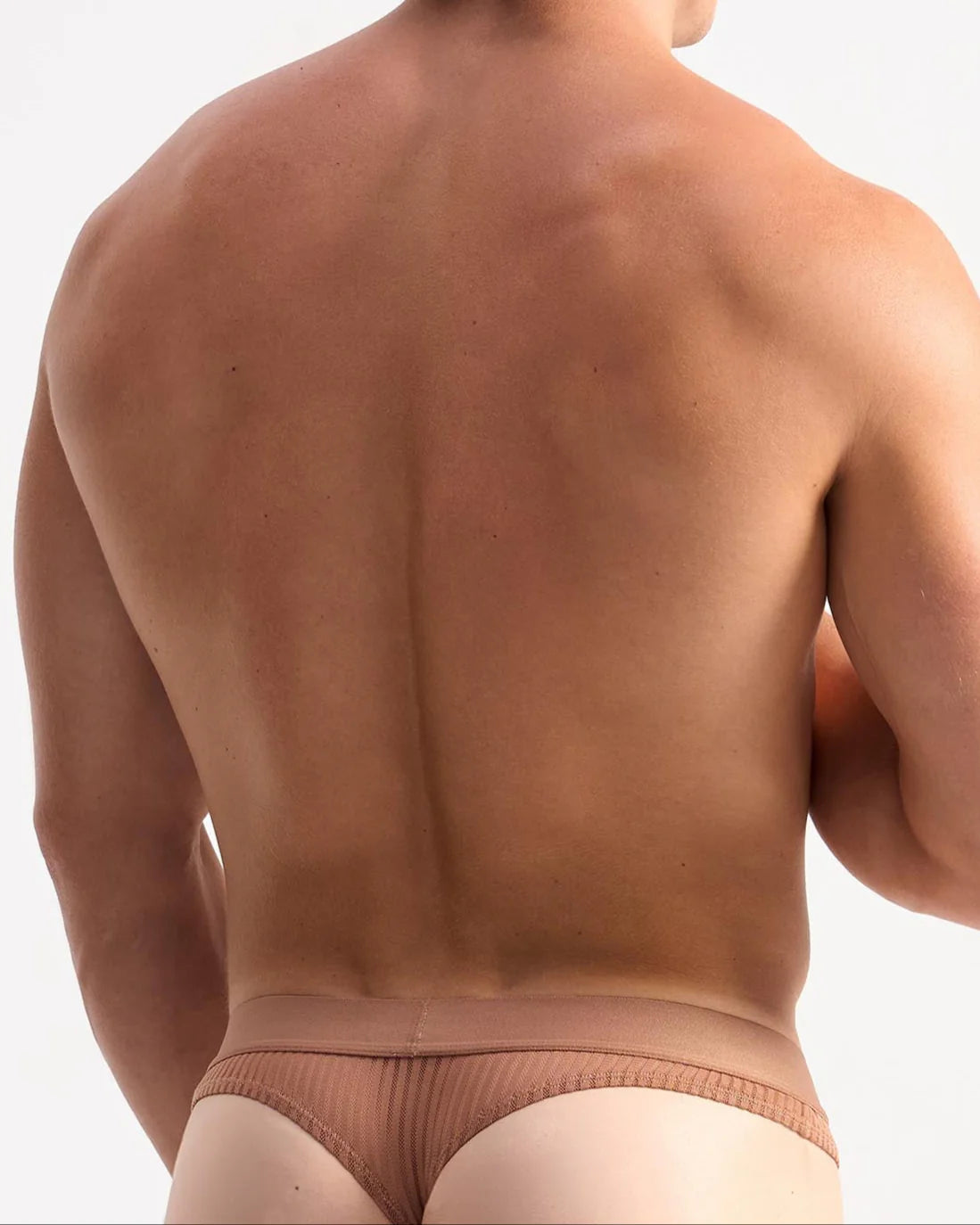 Hey Loverboy, what are you wearing? If it’s not the Casanova Thong, then you need to up your seduction game! Elegantly sheer with a self stripe in the fabric for an elevated super sexy offering. The sheer fabric extends from the pouch to the hip and over the cheeky back to form the seamless Thong. Features a solid fabric lined pouch and off-center metallic logo on front of the self-colored waistband.
