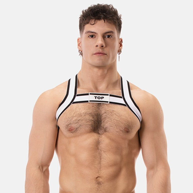 Get party ready with this harness from Barcode Berlin. This stand-alone elastic harness squares off the chest to create a defined masculine look. Match it with the TOP jock for the whole look.