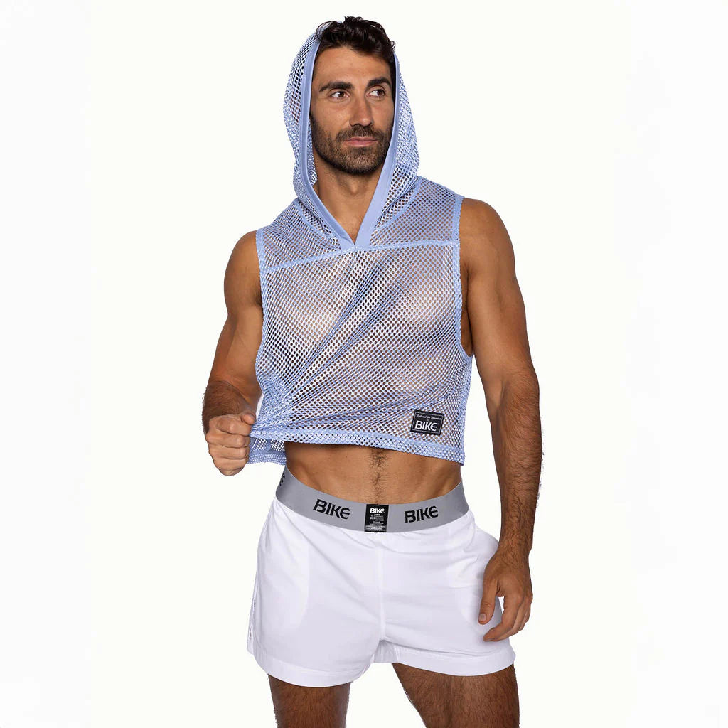 Bring vintage football vibes into the modern era with the BIKE Sleeveless Mesh Hoodie. This cropped jersey is made from super soft, breathable mesh and features a hood for extra style. Its lightweight design keeps you cool while delivering an athletic, edgy look.