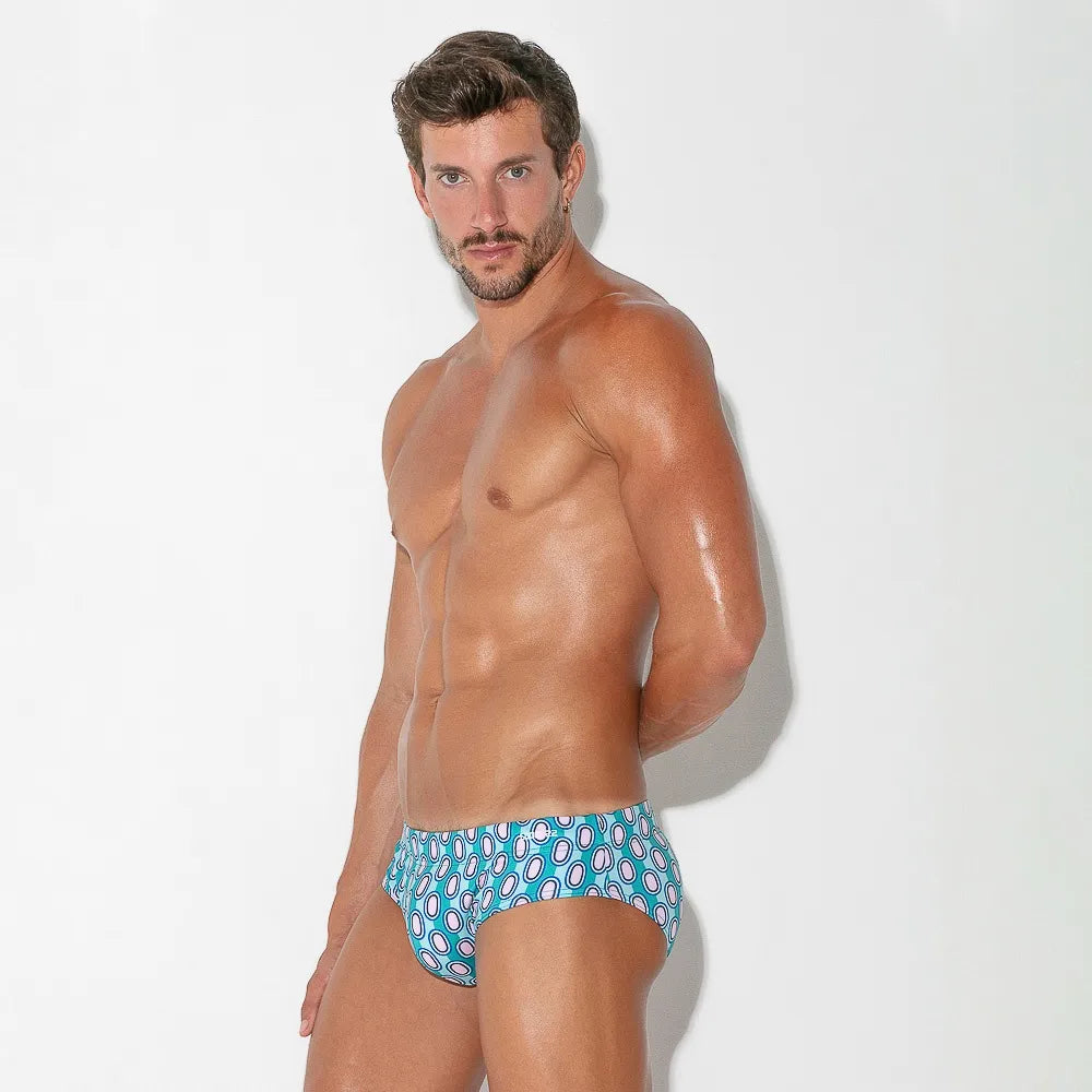 Look stunning at your next pool party in these swim briefs from Code 22. They feature a low-rise fit for the perfect tan line. The retro print will beautifully complement your summer-kissed skin. They are equipped with an enhancing removable cup, for the perfect-looking pouch, and a drawstring for additional adjustment. Lined.