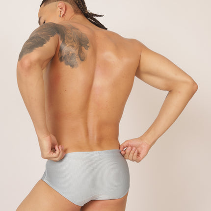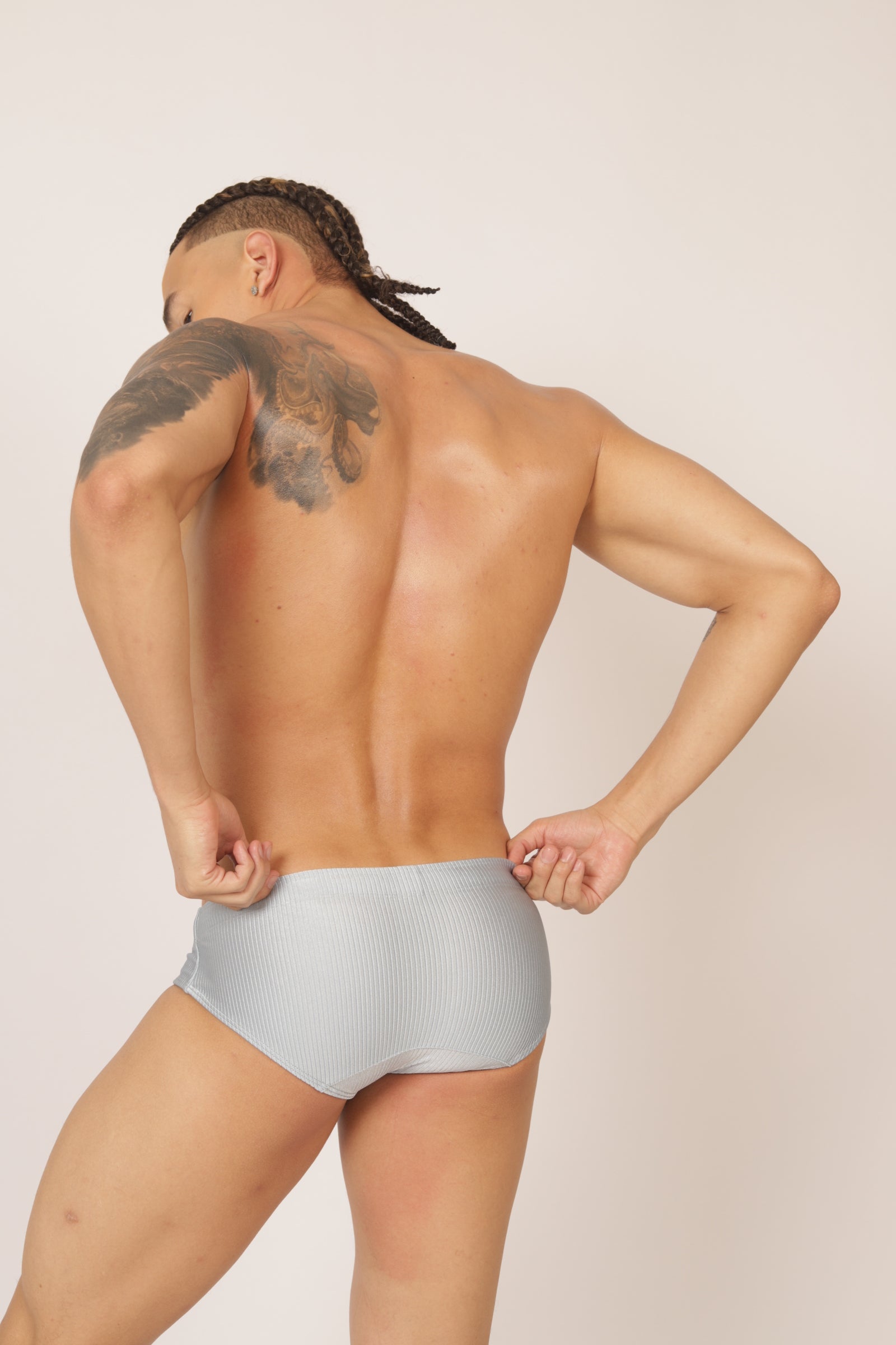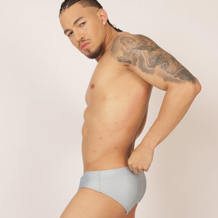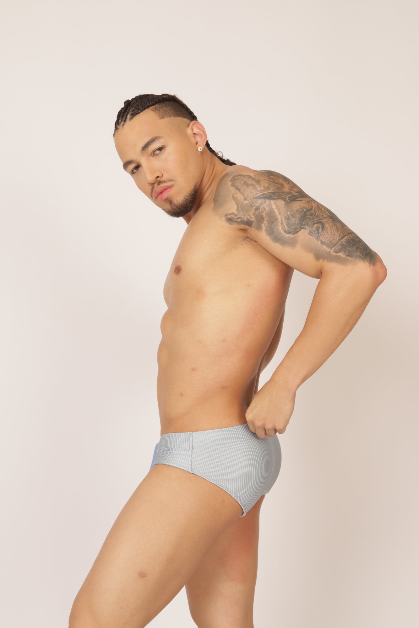 Crafted from subtly ribbed and stretchy fabric, this low-rise swimsuit hugs in all the right places. An internal drawstring and roomy pouch offer a secure, contoured fit while keeping things in place, whether you’re poolside or riding the waves.