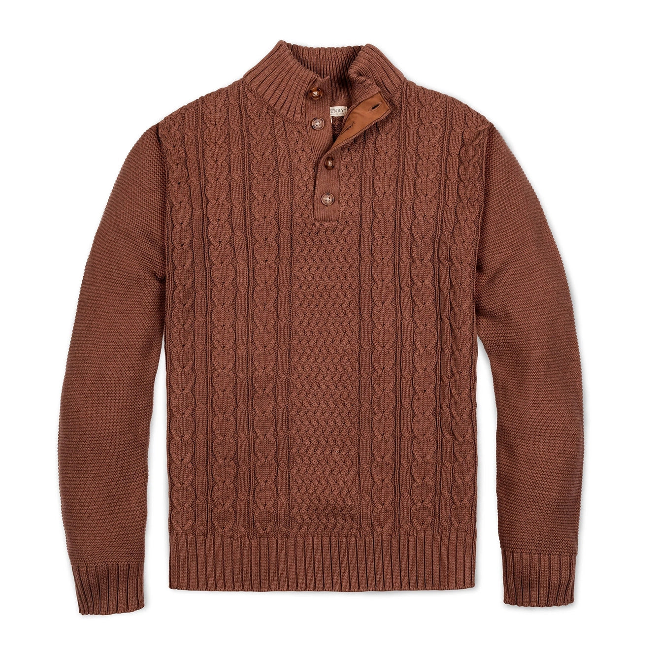 H/H Organic Mock Neck Cable Sweater Cinnamon Heather