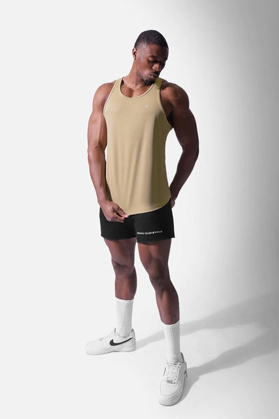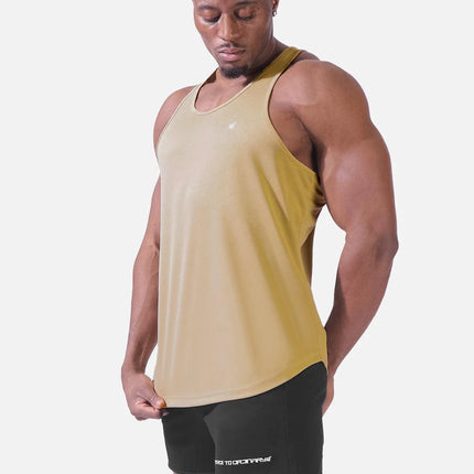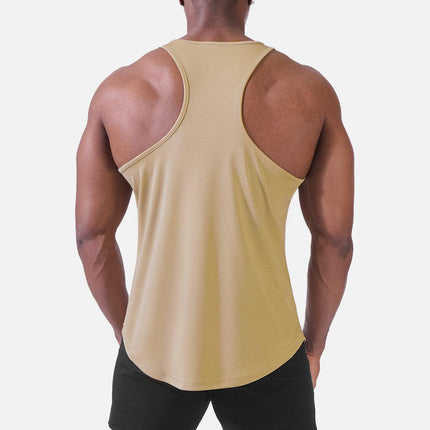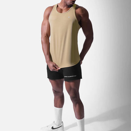 This microfiber dri-fit stringer tank top is a gym essential. It features a classic racer-back design. The dri-fit microfiber fabric wicks moisture away from your body and keeps you cool and comfortable at the gym or on your night out. Relaxed tapered fit.