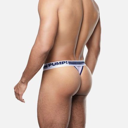 Blossom into comfort with the Bloom Thong. The microfiber cup lined with soft nylon ensures a gentle touch, complemented by the navy-blue elastic and white baseball stitching on the cup for a fresh look. The white and navy elastic waistband offers a pleasant and secure fit.