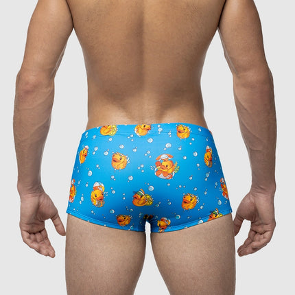 Playful, nostalgic, and full of charm, the Ducky Water Cheeky Trunk features a fun water ducky print perfect for your next poolside escape or beach day. Crafted from ultra-soft microfiber fabric, it offers a breathable, body-hugging fit with a low-rise front. With UPF 50+ protection, moisture-wicking properties, and fabric made from 12 recycled PET bottles, it’s sustainable, durable, and stylish. Dive into fun with this standout men’s swimwear piece.