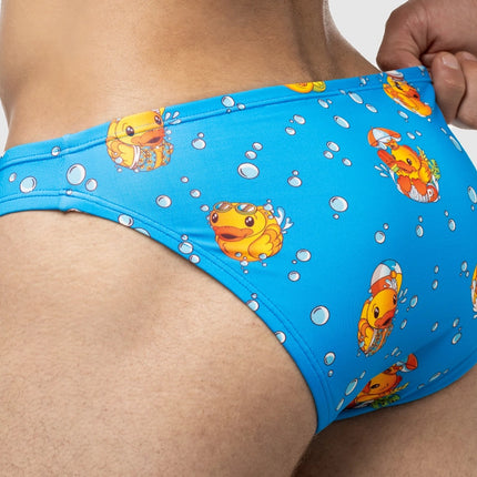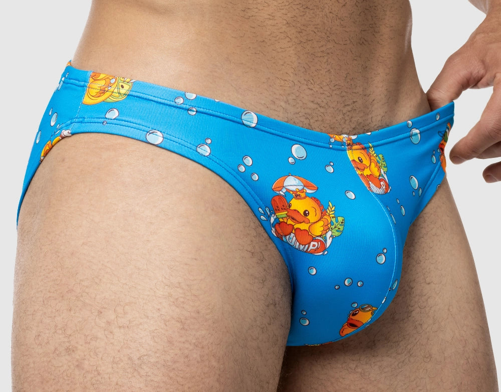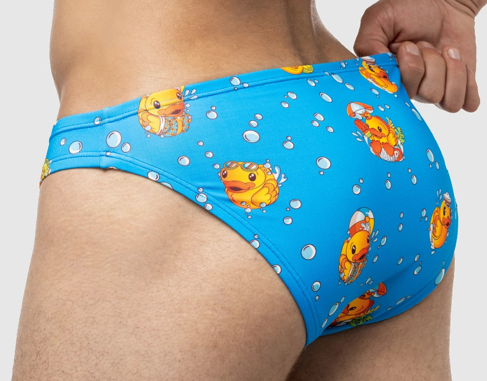 Playful, nostalgic, and full of charm, the Ducky Water Cheeky features a fun water ducky print perfect for your next poolside escape or beach day. Crafted from ultra-soft microfiber fabric, it offers a breathable, body-hugging fit with a low-rise front and revealing rear cut. With UPF 50+ protection, moisture-wicking properties, and fabric made from 12 recycled PET bottles, it’s sustainable, durable, and stylish. Dive into fun with this standout men’s swimwear piece.