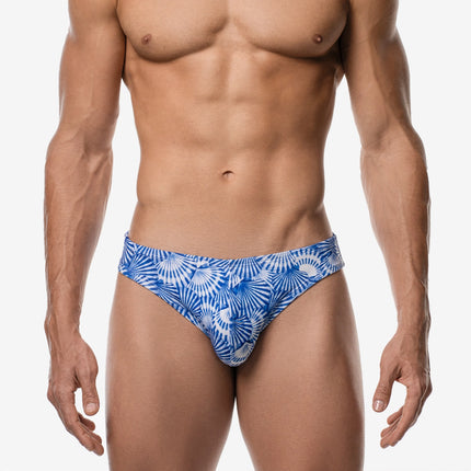 Inspired by coastal elegance, the Shell Water Cheeky features a serene, ocean-inspired shell print perfect for your next escape. Made from ultra-soft microfiber fabric, it offers a breathable, lightweight feel with a flattering low-rise front and cheeky rear cut. With UPF 50+ sun protection, moisture-wicking durability, and fabric crafted from 12 recycled PET bottles, this sustainable men’s swimwear piece delivers comfort and timeless seaside style.