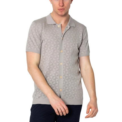 Crafted from high-quality crochet knit fabric, this polo shirt features a unique geometric pattern that adds a touch of modern flair. The crochet knit construction provides breathability and texture, making it ideal for warmer weather. The polo collar adds a classic touch, while the short sleeves offer comfort and versatility. With its tailored fit and attention to detail, this polo shirt is perfect for both casual and semi-formal occasions. Pair it with chinos or shorts for a relaxed daytime look, or dress it up with trousers for a more refined ensemble.