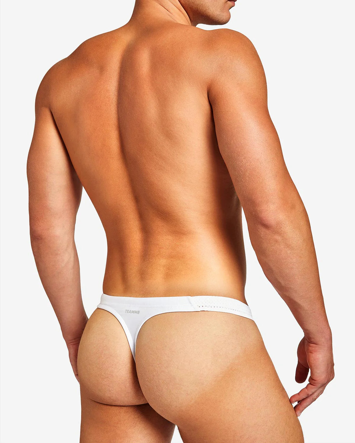 Feel the vibration and back it up in the body confident and updated Bass Swim Collection. The Bass Mesh Swim Thong slinks its way in with an improved cut and subtle sheen but still showcases a low-rise cut men's swimwear with a hip hugging band leading to the string part. Showing off your sexiest accessory, your skin, to the max! The single-layer mesh panel on one side adds that extra oomph, because it’s all about the BASS!