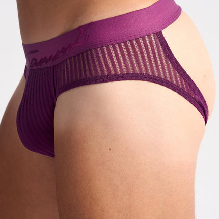 Hey Loverboy, what are you wearing? If it’s not the Casanova Jock then you need to up your seduction game! Elegantly sheer with a self stripe in the fabric for an elevated super sexy offering. The sheer fabric extends from the pouch and over the side to form the straps to give you a jockstrap with max lift, support, and comfort! Features a solid fabric lined pouch and off-center metallic logo on front of the self-colored waistband.