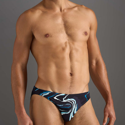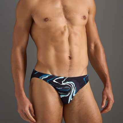 Bring the Resort vibe this summer, wherever you are! Two inspired prints with two hue variations of each, evoking a kaleidoscope of laid back, endless summer fun. This Swim brief is fully lined and is constructed from Recycled materials with a sexy high hip cut to bare a little more skin. Featuring a rubber logo on center back and internal stripe detail tie-cord.