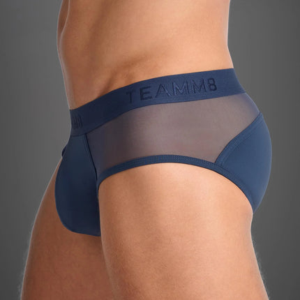 Play to win! The super sexy Score Sheer Brief from teamm8 is back, hotter and better than ever. This time featuring a sheer skin-baring insert that starts at the side of the full coverage pouch and curves over the top half of the back of the Brief creating a super sexy peek-a-boo effect. Sexy men's underwear never looked so good.