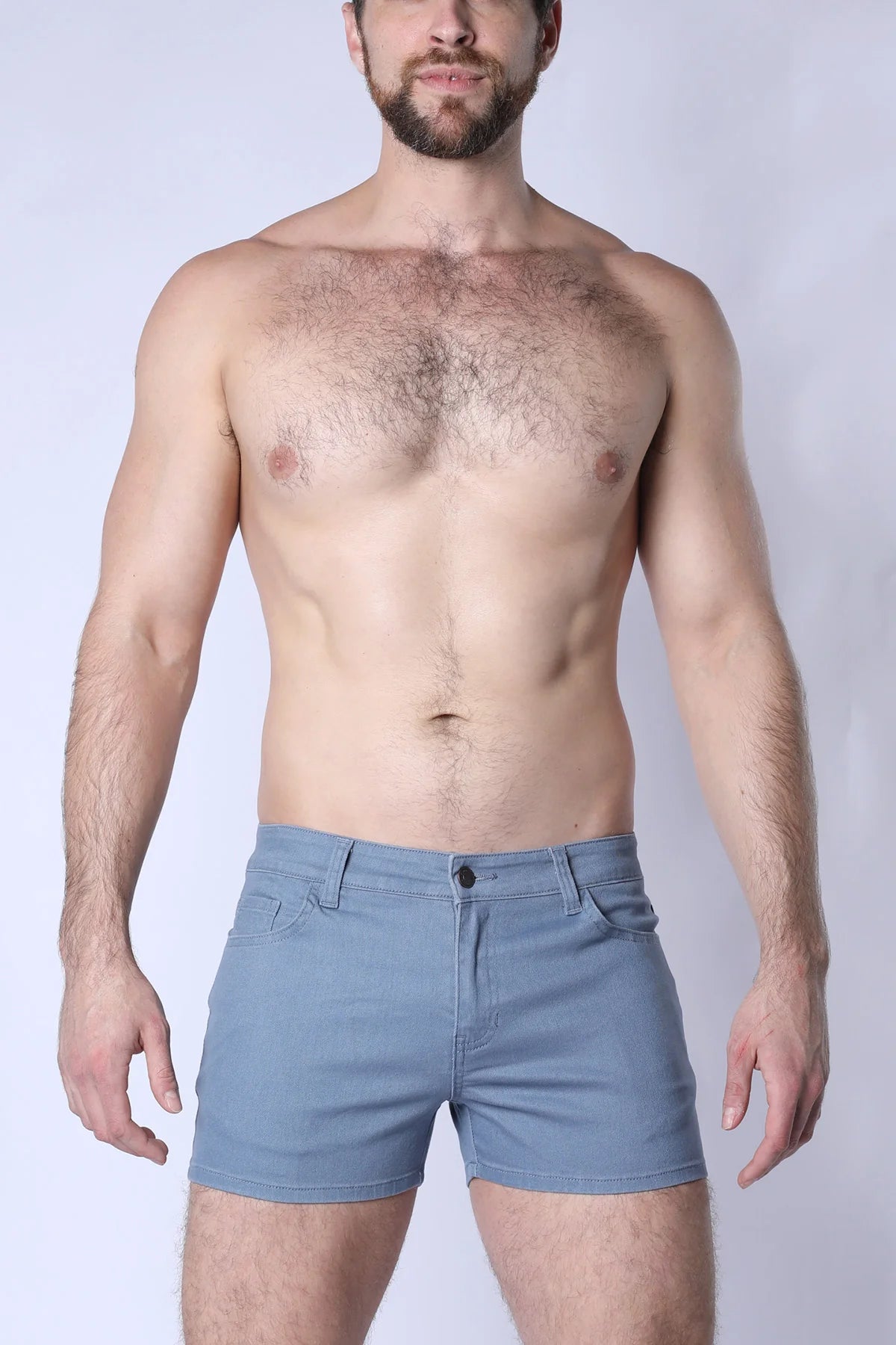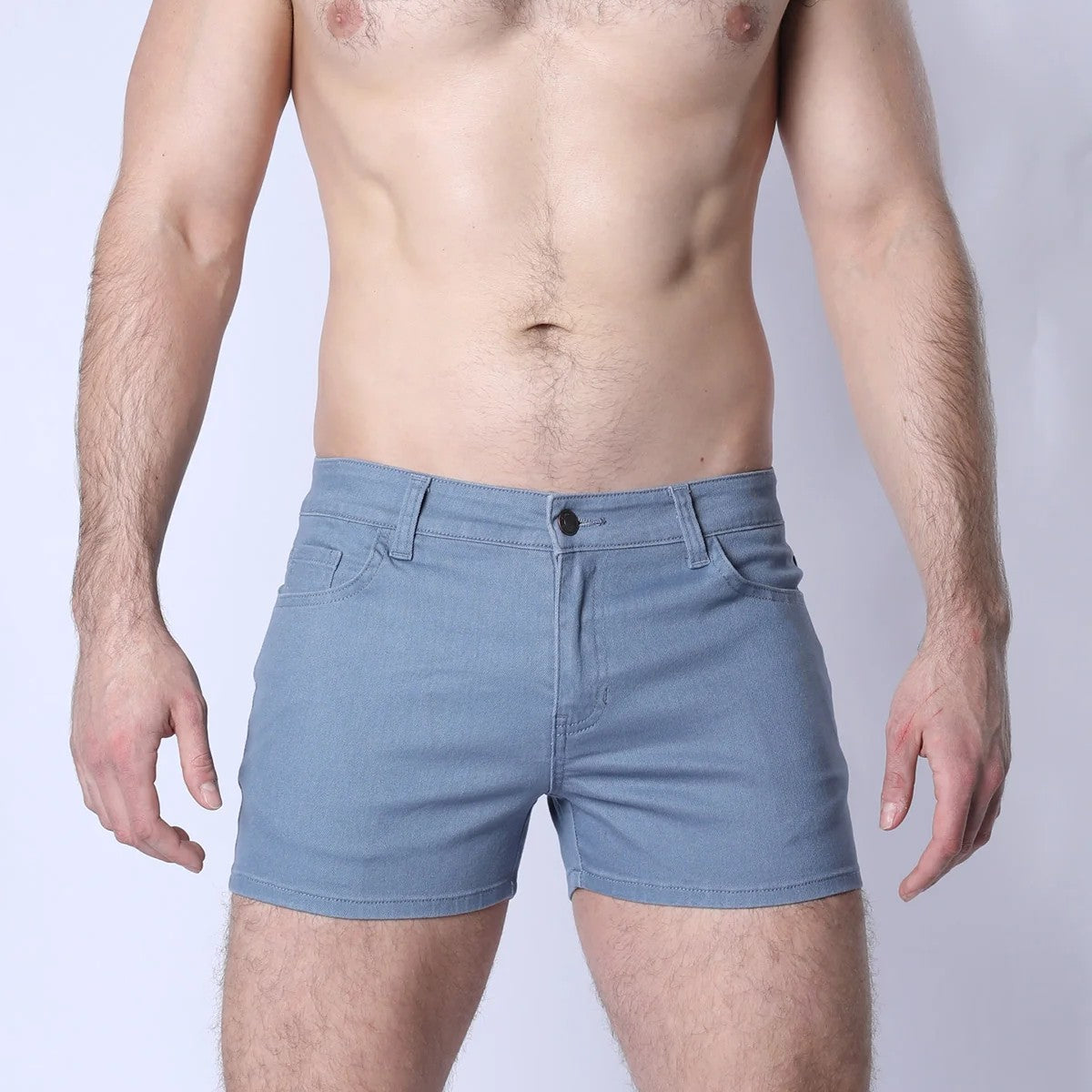 Introducing the all-new Amalfi Super Stretch Cotton Twill Short, a must-have addition to your summer wardrobe. Crafted from premium 4-way stretch cotton twill in fresh summer colors, these shorts offer a versatile thigh-high length and a zipper fly with a button closure for easy wear. The classic 5-pocket design ensures both style and functionality, while the leather patch on the back proudly displays the Timoteo logo. 3" inseam.