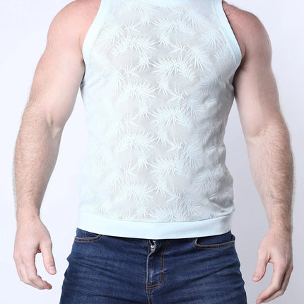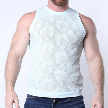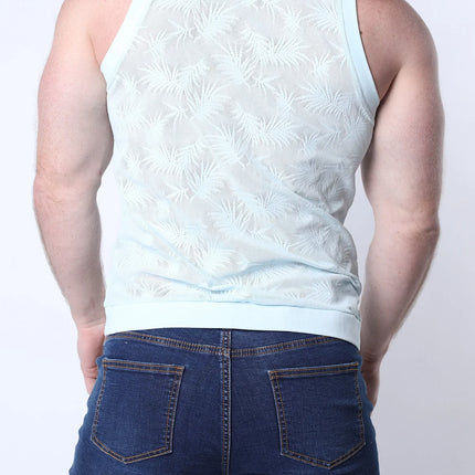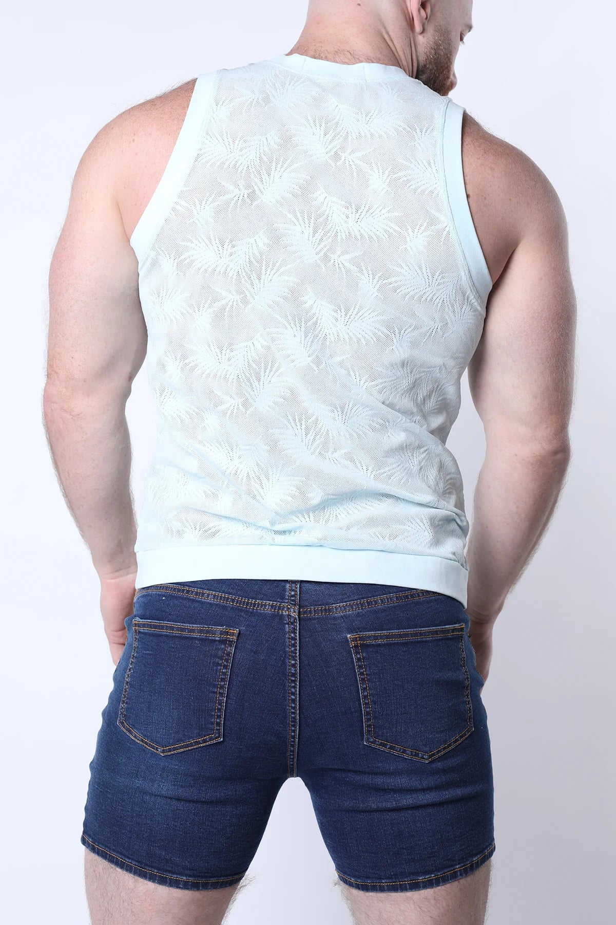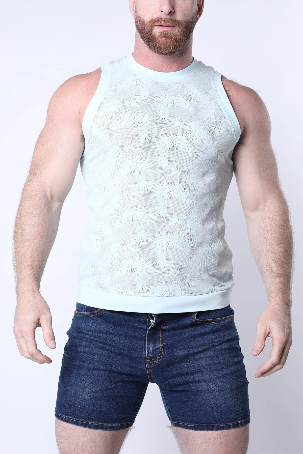 Turn up the heat in the Amalfi Mesh Tank Top from Timoteo, where bold meets breezy. Crafted from lightweight, semi-sheer mesh with an all-over tonal palm leaf pattern, this fitted tank top subtly shows off your physique while keeping things tastefully provocative. The soft stretch fabric hugs just right, making it perfect for day parties, late nights, and everything in between. Match it with the Amalfi shorts to finish the look.