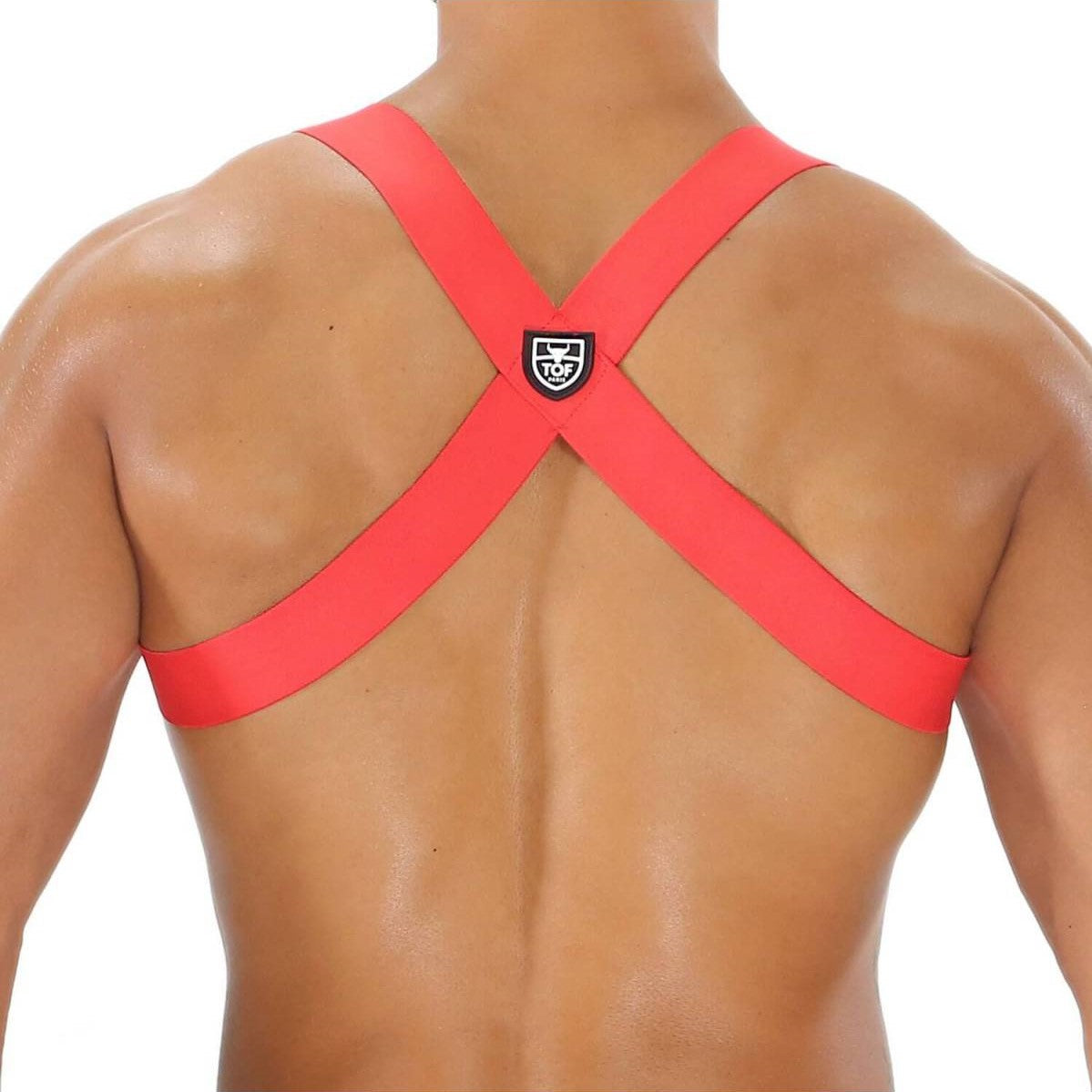 The Party Boy harness from TOF is a must-have in any party boy collection! It features elasticated 3cm wide straps crossed at the back. Silver buckle to the front.